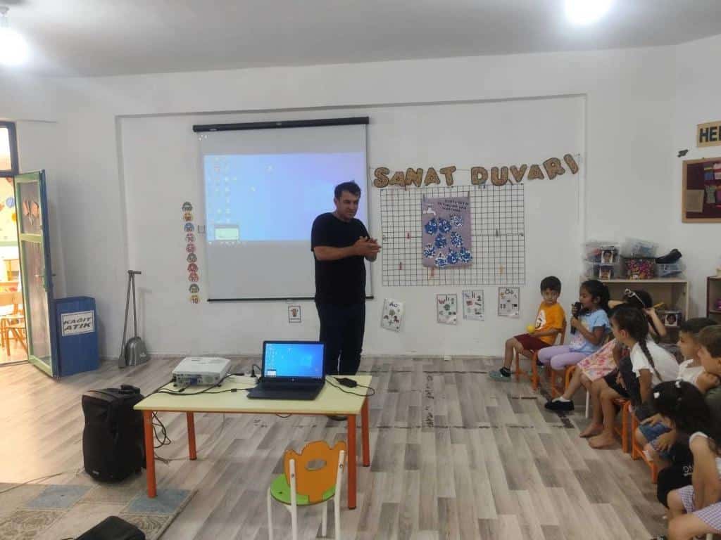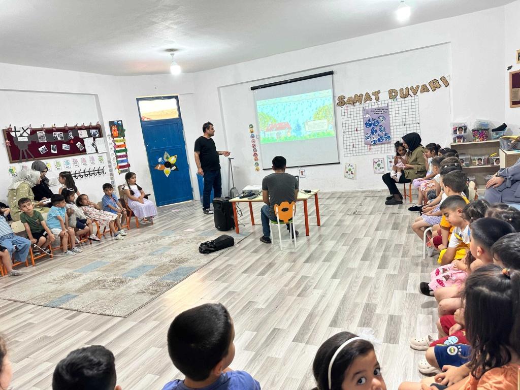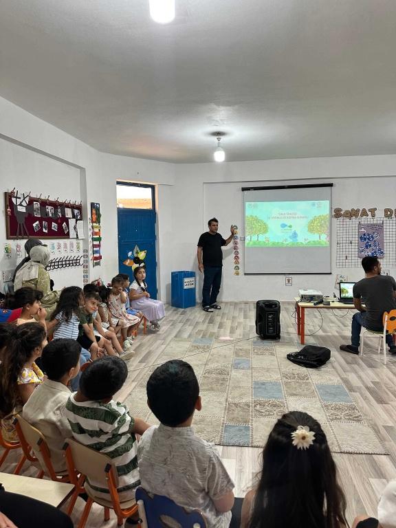 "Su Verimililği Seferberliği Eğitimi" Kapsamında okulumuz öğretmen ve öğrencilerine yönelik seminer verildi. Seminerde hikayemizin kahramanı "Can Suyu" adlı su damlasının macerası anlatılarak; su döngüsü, suyun bütün canlılar için önemi ve suyun korunması için yapılması gerekenler vurgulandı. Seminere katılan bütün çocuklar birer su koruyucusu olarak, suyumuzu koruyacaklarına söz verdiler.